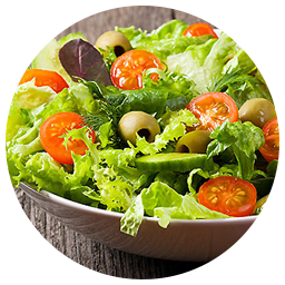 Salade, jambon, fromage, oeuf, tomates, poivrons grillés, olives |