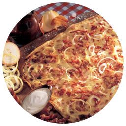 Crème, Lardons, Champignons, Oignons, Gruyère |